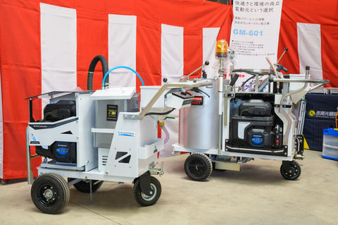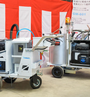 ライン施工機は道路の路面にラインを引くために使用する機械です。